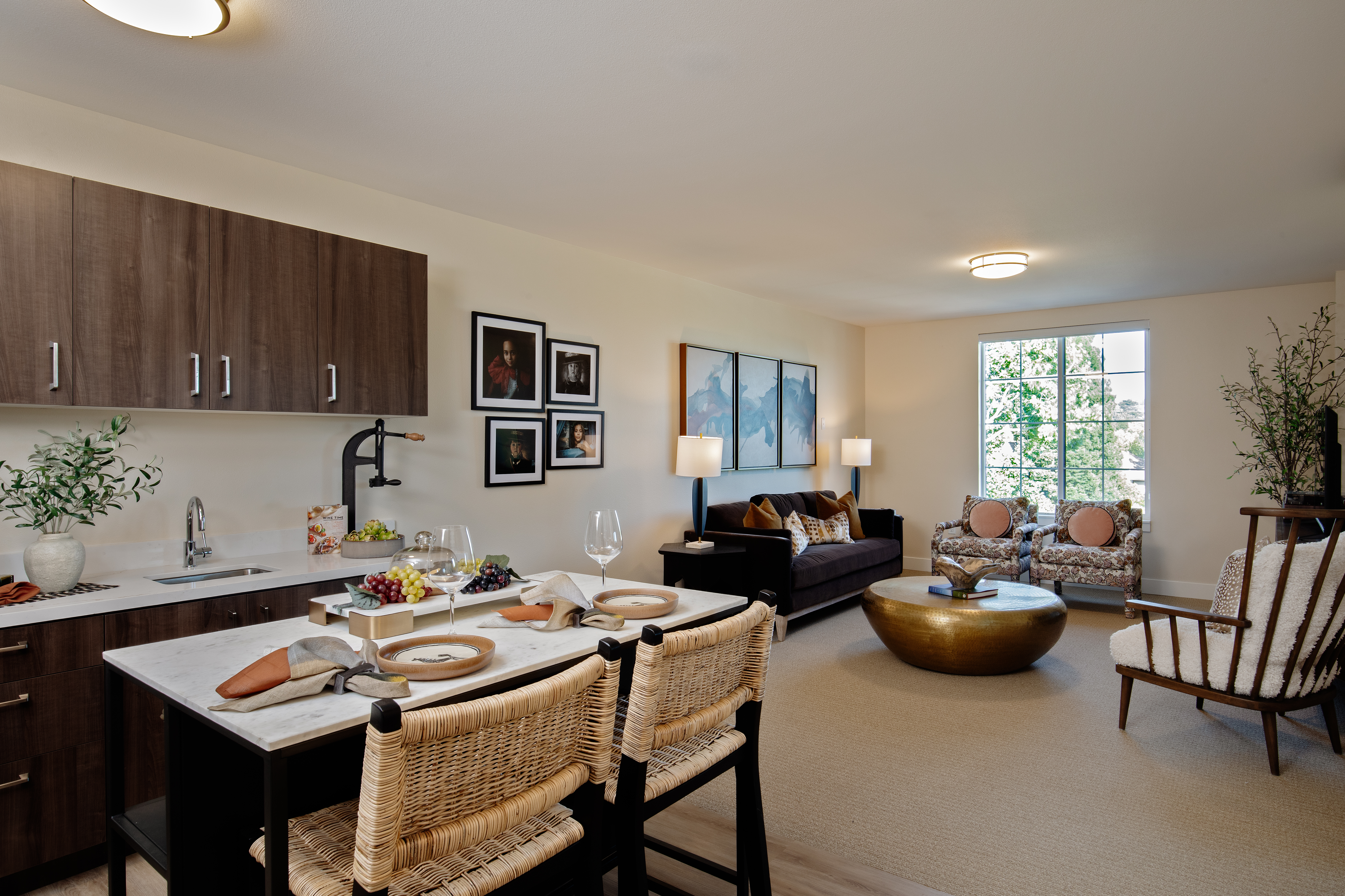 The project includes a resident dining room and outdoor dining space, an activity room, fitness and wellness facility, and a cinema auditorium. A rooftop terrace allows residents an additional outdoor recreation venue. With four floors at over 112,000 square feet, the property also features subterranean parking on site. Located in the North Bay region of Marin County, San Rafael offers a quaint downtown within walking distance to the new Aegis Living San Rafael.